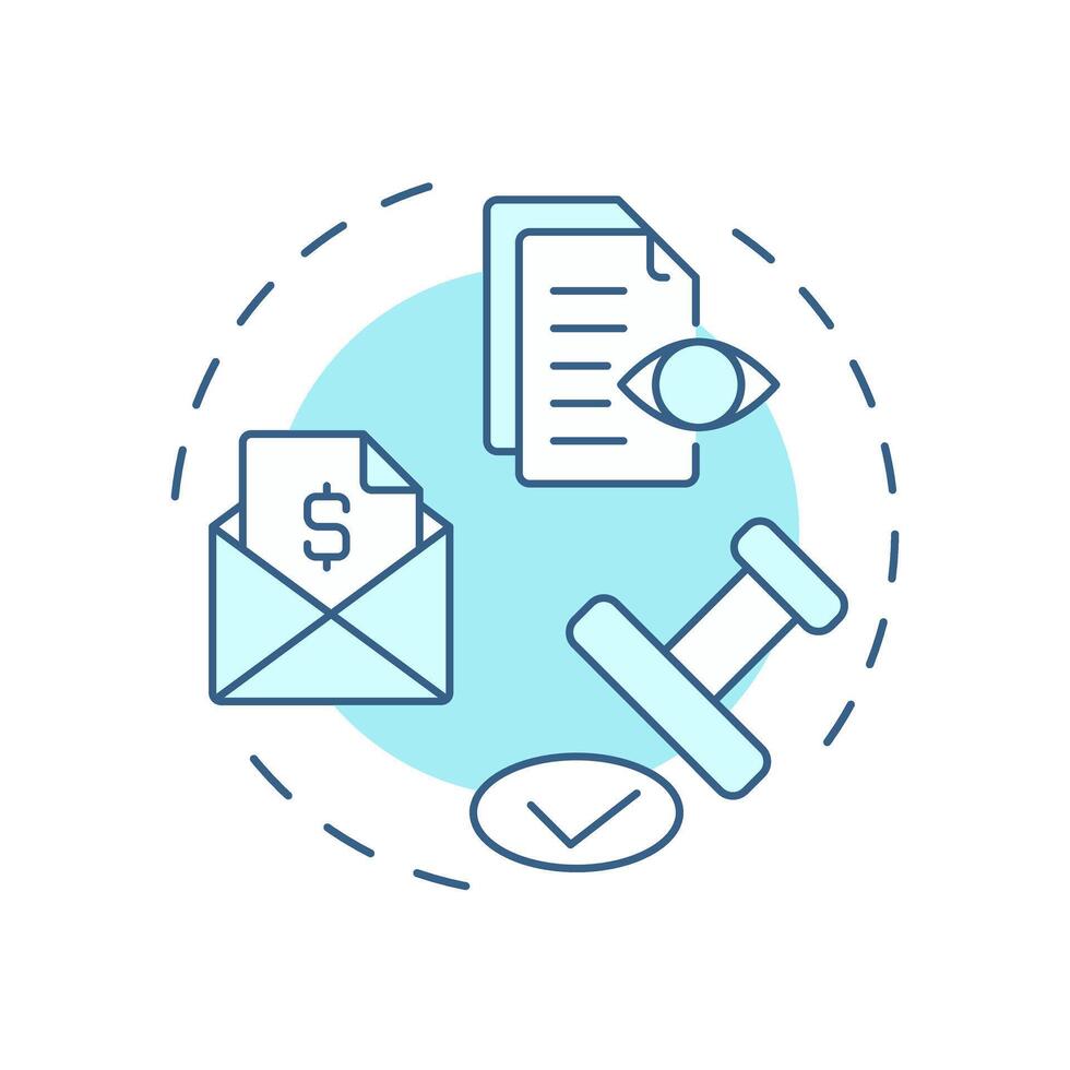 enviar factura a factor suave azul concepto icono. factorización proceso. representando envío, revisión y aprobación. redondo forma línea ilustración. resumen idea. gráfico diseño. fácil a utilizar en artículo Vector Pro