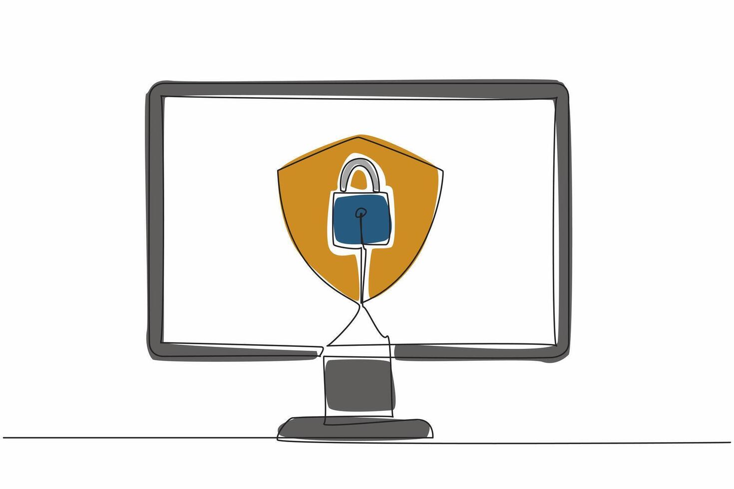 soltero uno línea dibujo proteger y candado en el medio de el computadora monitor. computadora utilizar dos seguridad sistemas proteger. seguro. datos intimidad día. continuo línea diseño gráfico ilustración Vector Pro