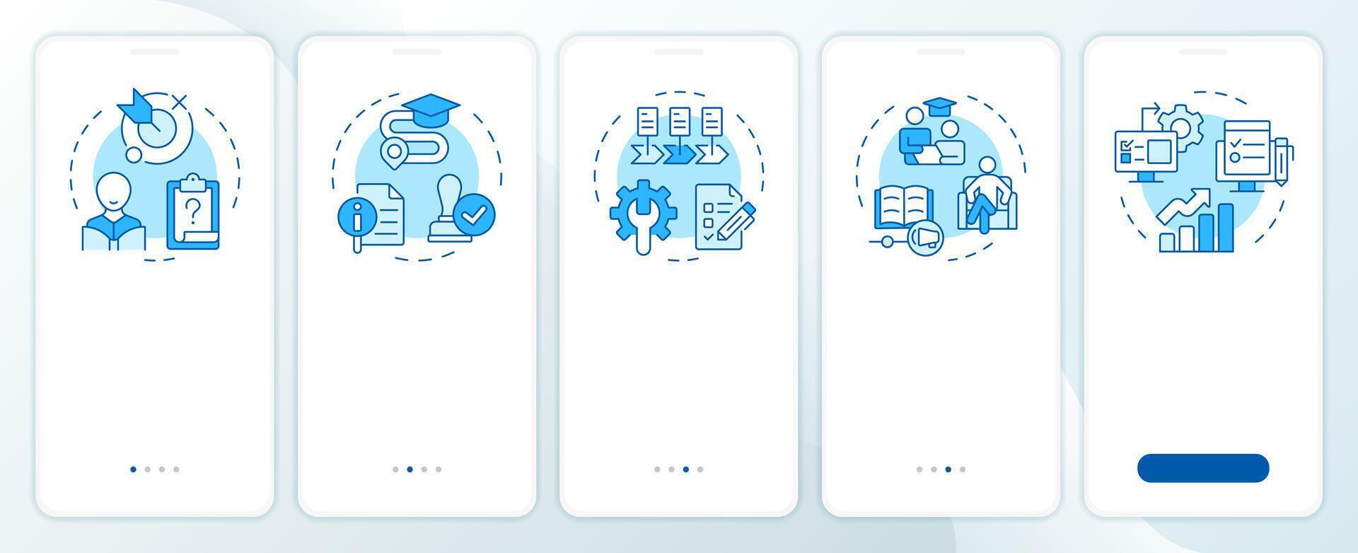 iep proceso azul inducción móvil aplicación pantalla. educación plan recorrido 5 5 pasos editable gráfico instrucciones con lineal conceptos. ui, ux, gui modelo Vector Pro