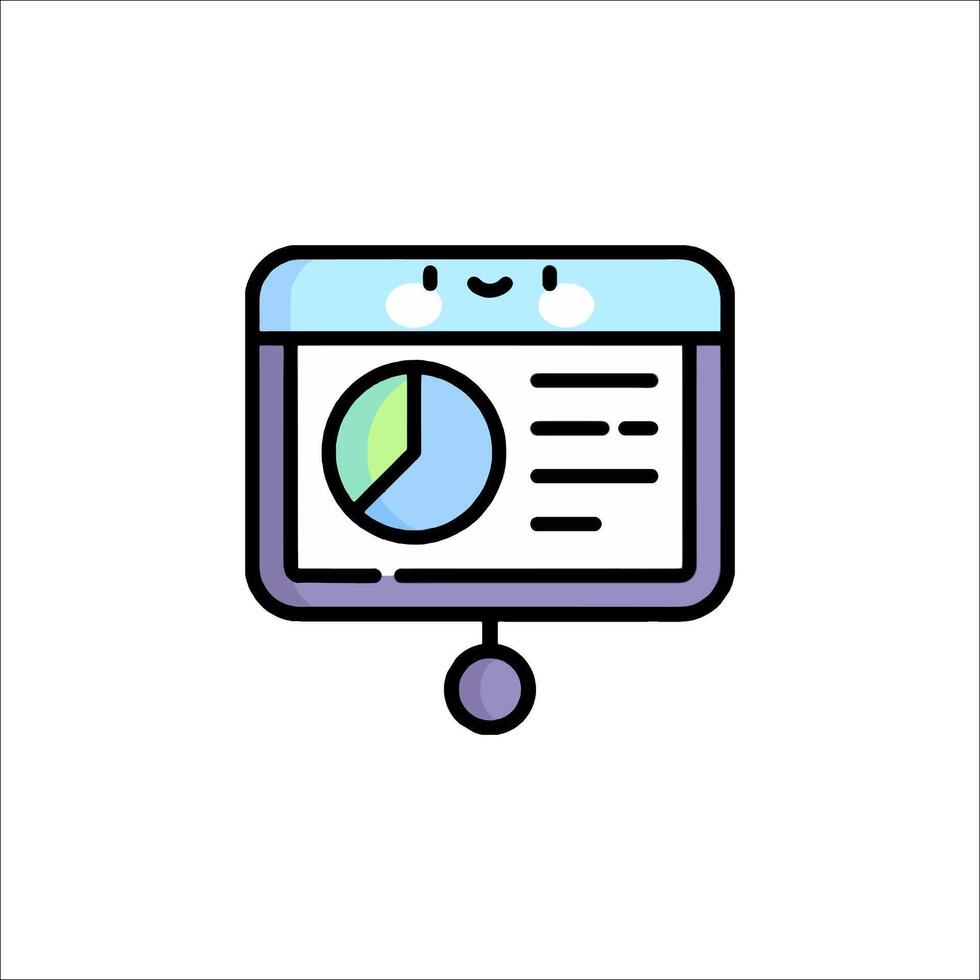 un dibujos animados icono de un computadora pantalla con un tarta gráfico vector