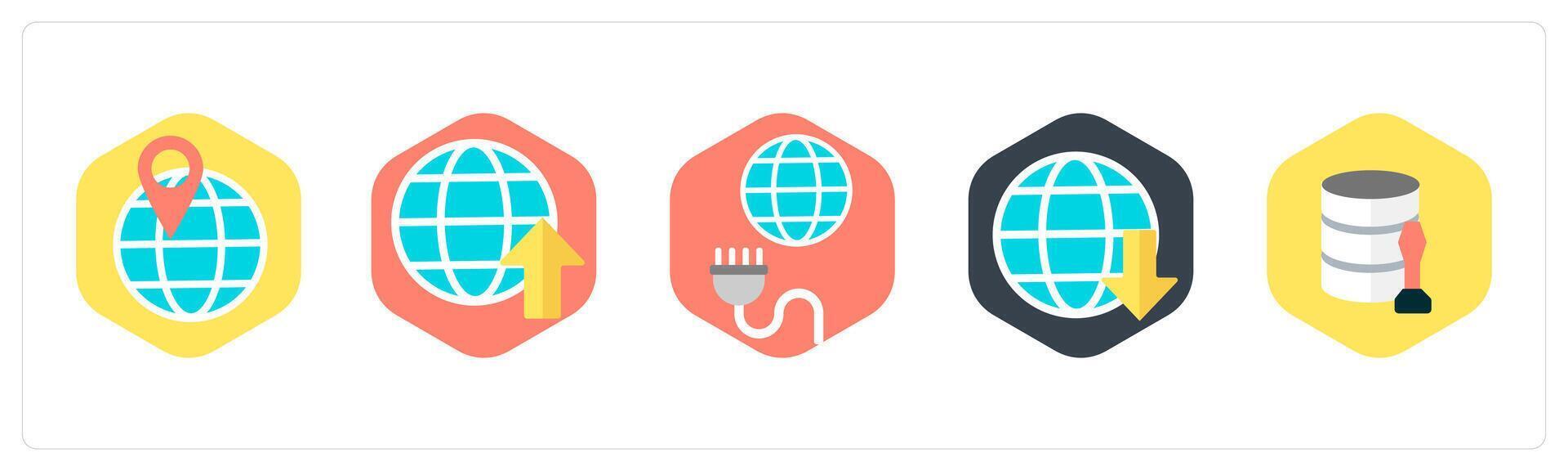 un conjunto de 5 5 mezcla íconos como global ubicación, globo, global conexión Vector Pro