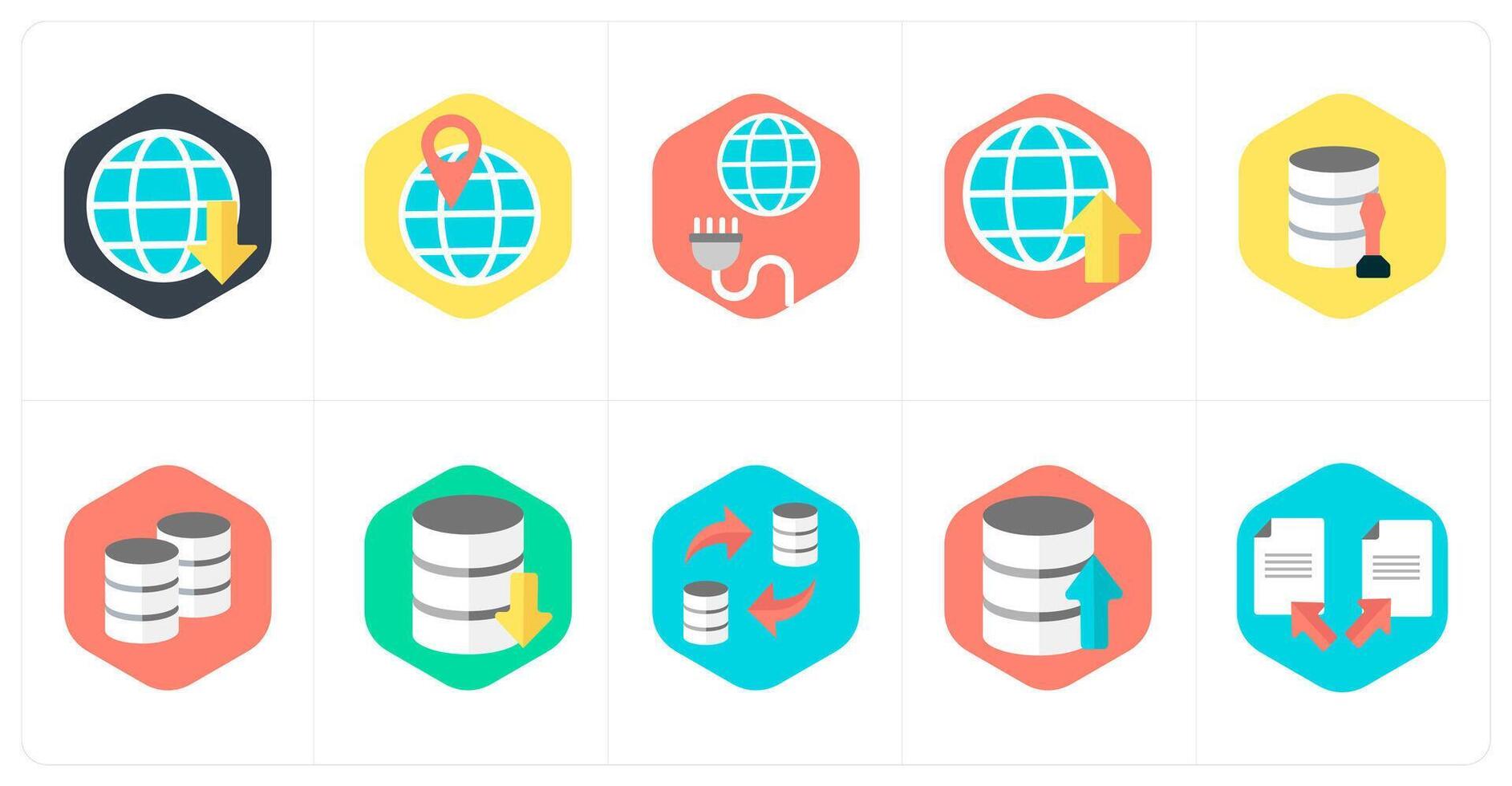 un conjunto de 10 mezcla íconos como globo, global ubicación, global conexión Vector Pro