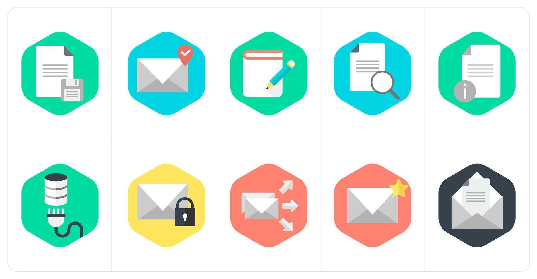 un conjunto de 10 mezcla íconos como documento, correo ubicación, editar contenido Vector Pro