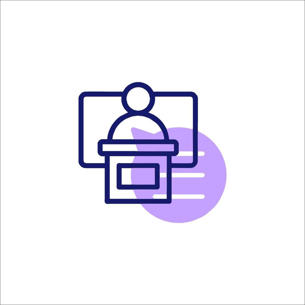 un púrpura línea icono de un hombre en frente de un computadora vector