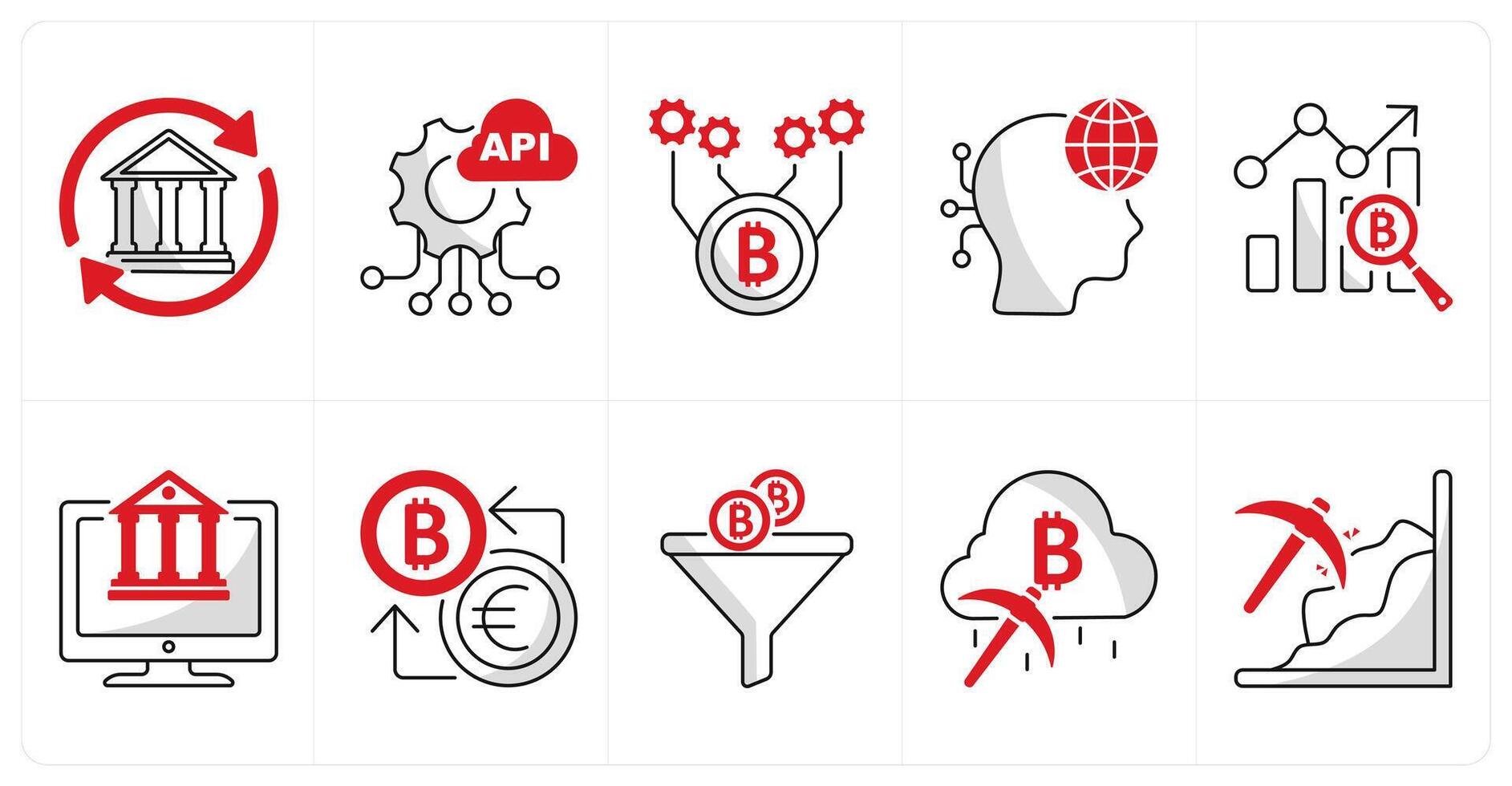un conjunto de 10 bitcoin íconos como banco transferir, API, bitcoin tecnología Vector Pro