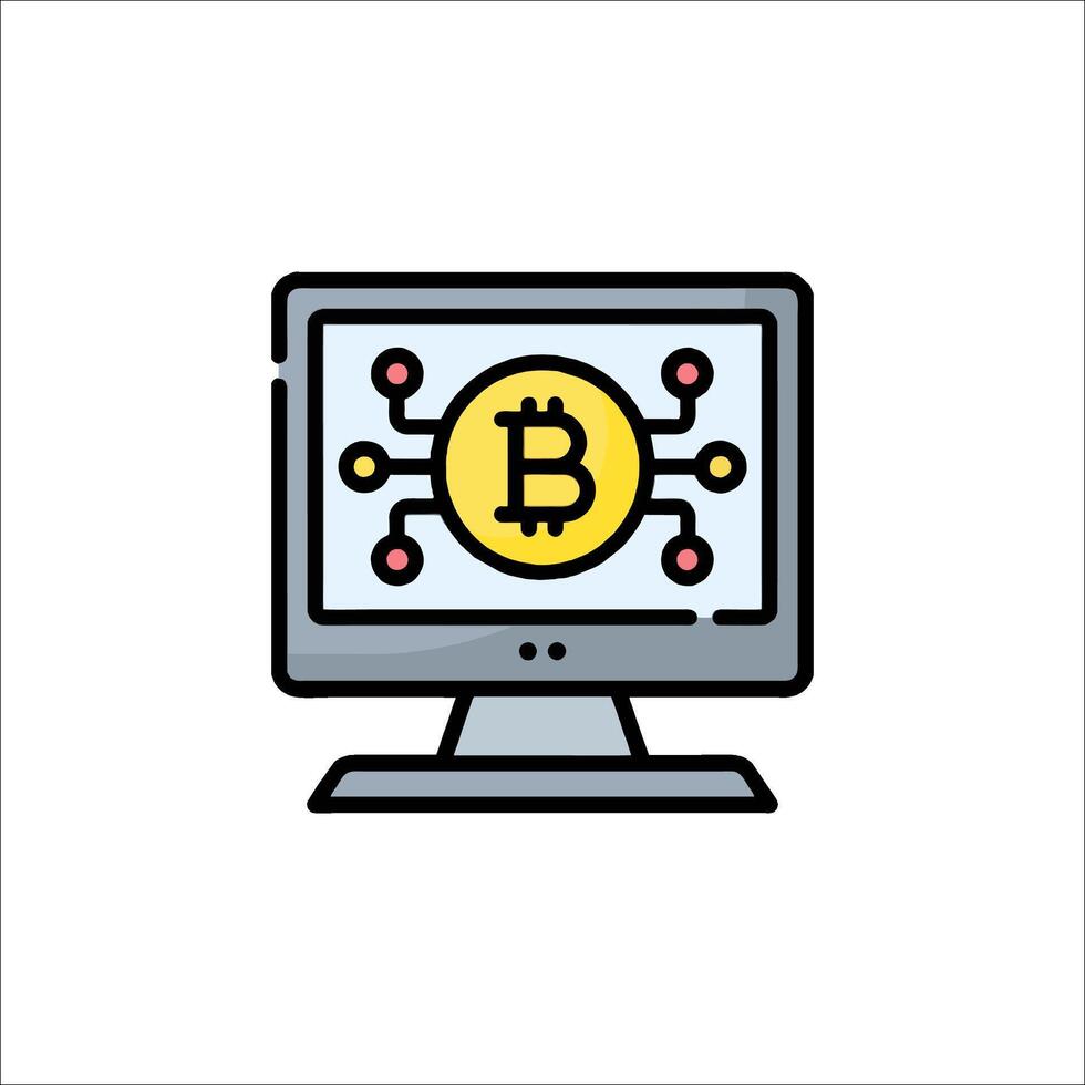 bitcoin icono en un computadora monitor vector