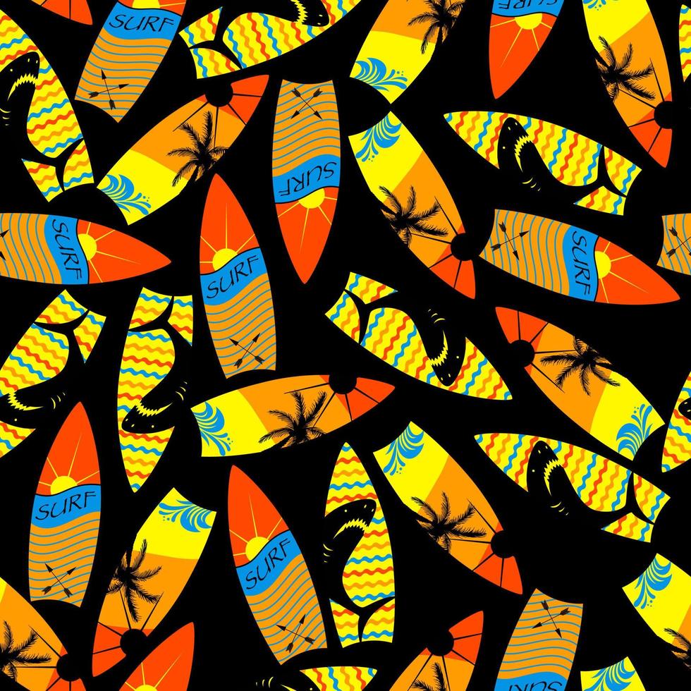 patrón de verano abstracto sin costuras con escritorio de surf, tiburón, ola, para textiles, estampados. Vector Pro