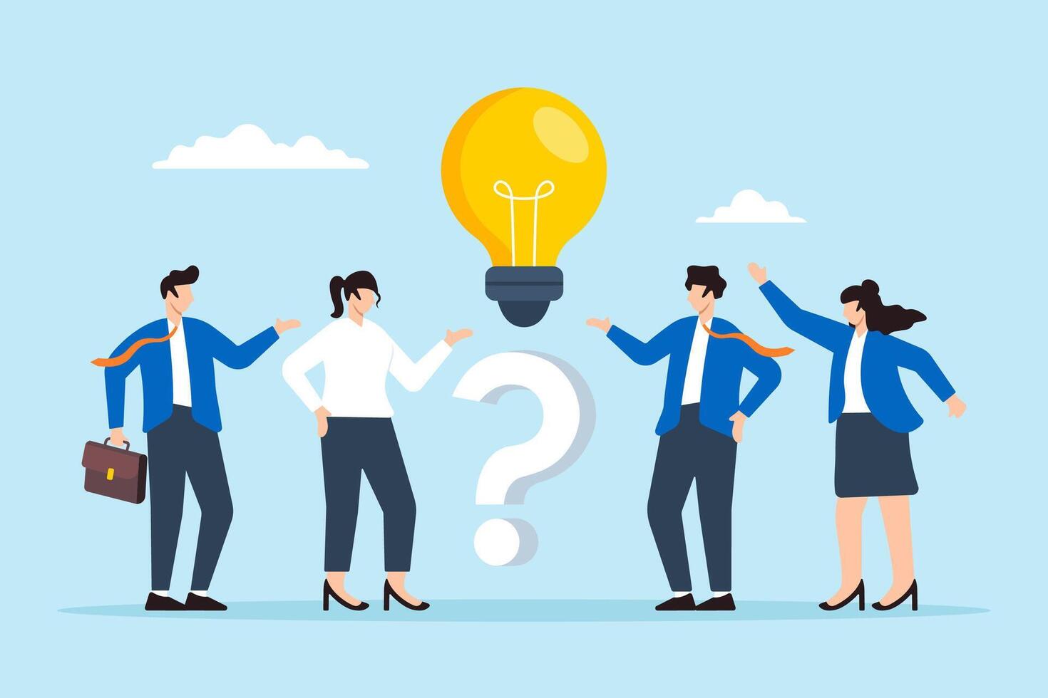 plano ilustración de negocio personas estar con pregunta marca y bombilla simbolizando qa sesión a resolver problema Vector Pro