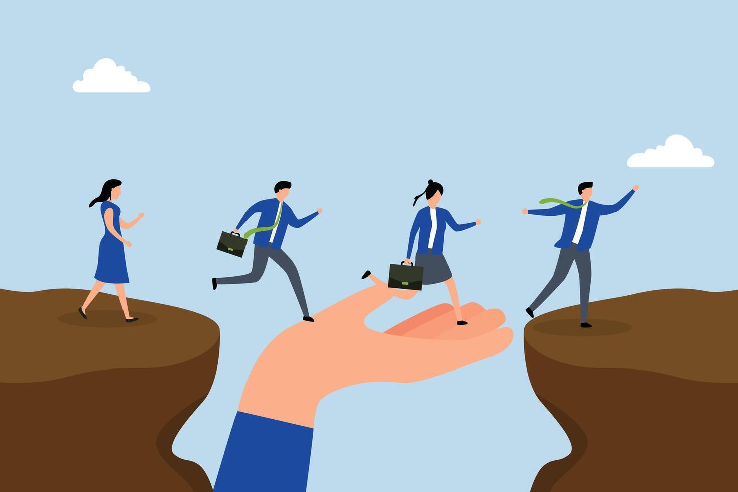 ayuda a resolver problema, masivo mano ayuda empresarios en superar desafío brecha. Vector Pro