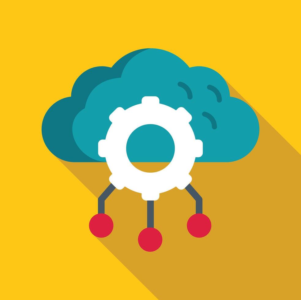nube informática administración con engranaje y conexiones simbolizando datos Procesando Vector Pro