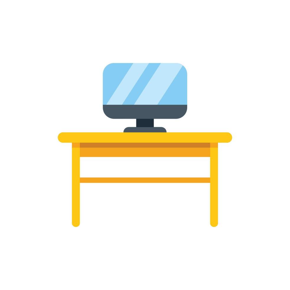 moderno escritorio con computadora monitor mostrando información en de madera mesa Vector Pro