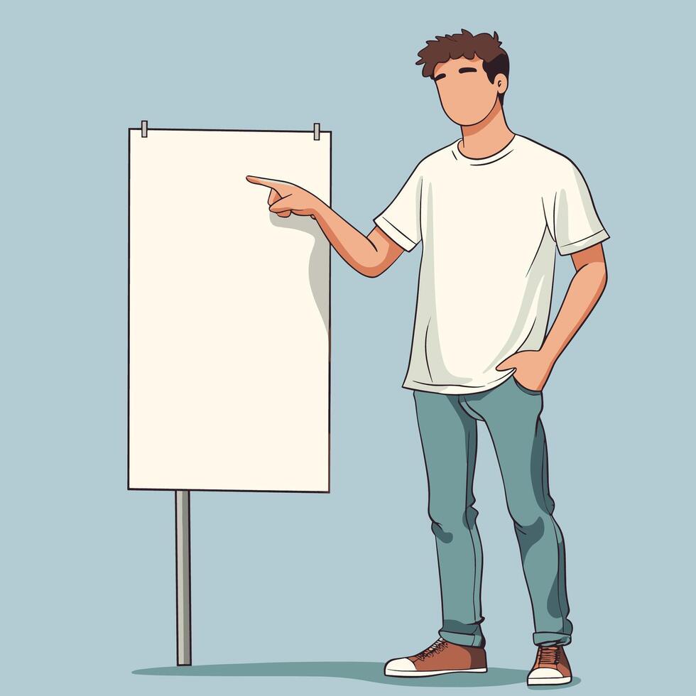 joven hombre explicando ideas utilizando un pizarron en un casual ajuste Vector Pro