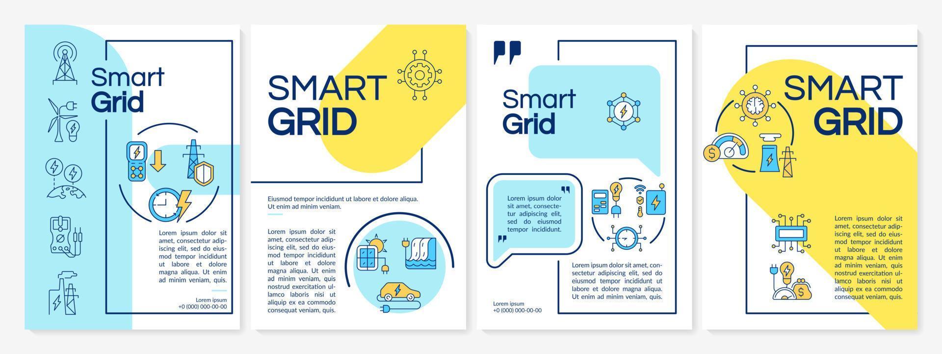 plantilla de folleto azul y amarillo de red inteligente. la entrega de energía. diseño de impresión de folletos con iconos lineales. diseños vectoriales para presentación, informes anuales, anuncios. fuentes questrial-regular, lato-regular utilizadas Vector Pro