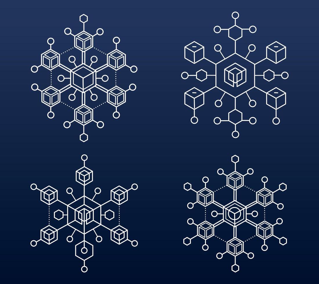 blockchain red concepto con copo de nieve estructura. digital criptomoneda sistema en un geométrico diseño Vector Pro