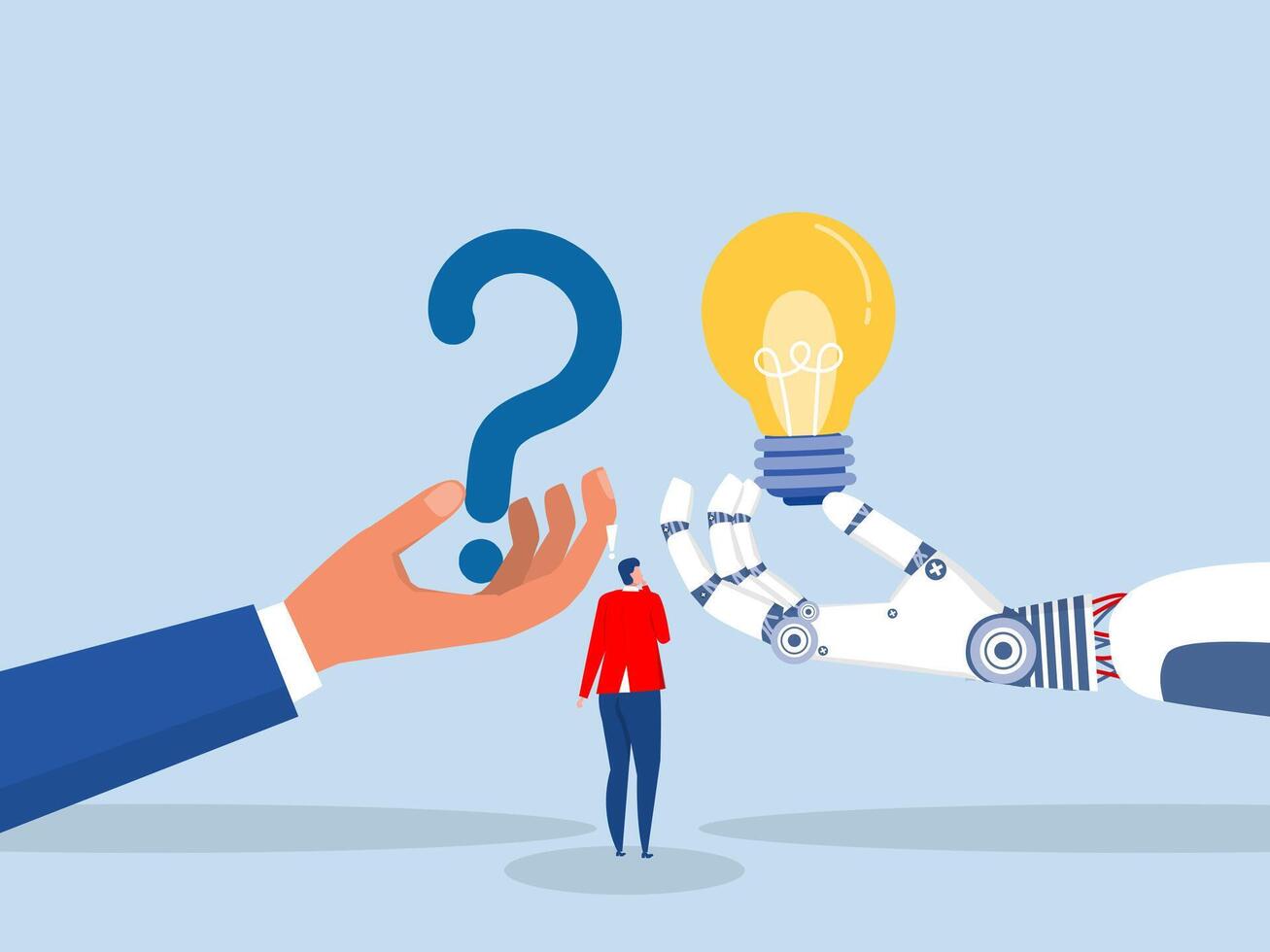 artificial inteligencia ai a ayuda concepto, humano mano con pregunta marca y ai respuesta.tecnología ai a ayuda resolver problema Vector Pro