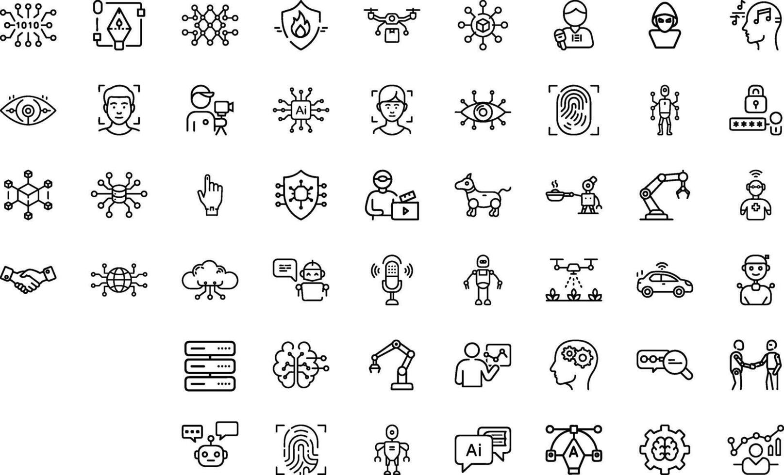 íconos conjunto editable Delgado carrera línea estilo de artificial inteligencia de web tecnología y móvil aplicaciones Vector Gratis