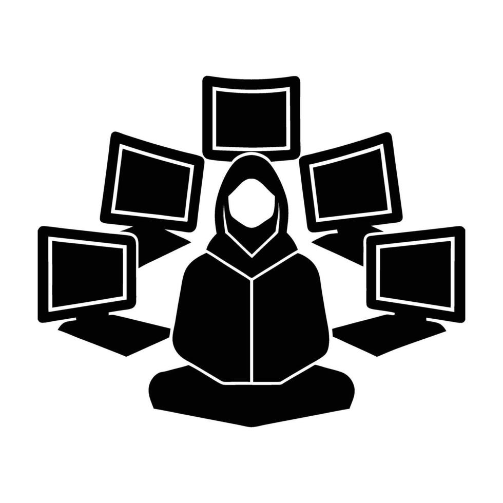 un determinado hacker gerente múltiple pantallas con excepcional atención y pericia vector