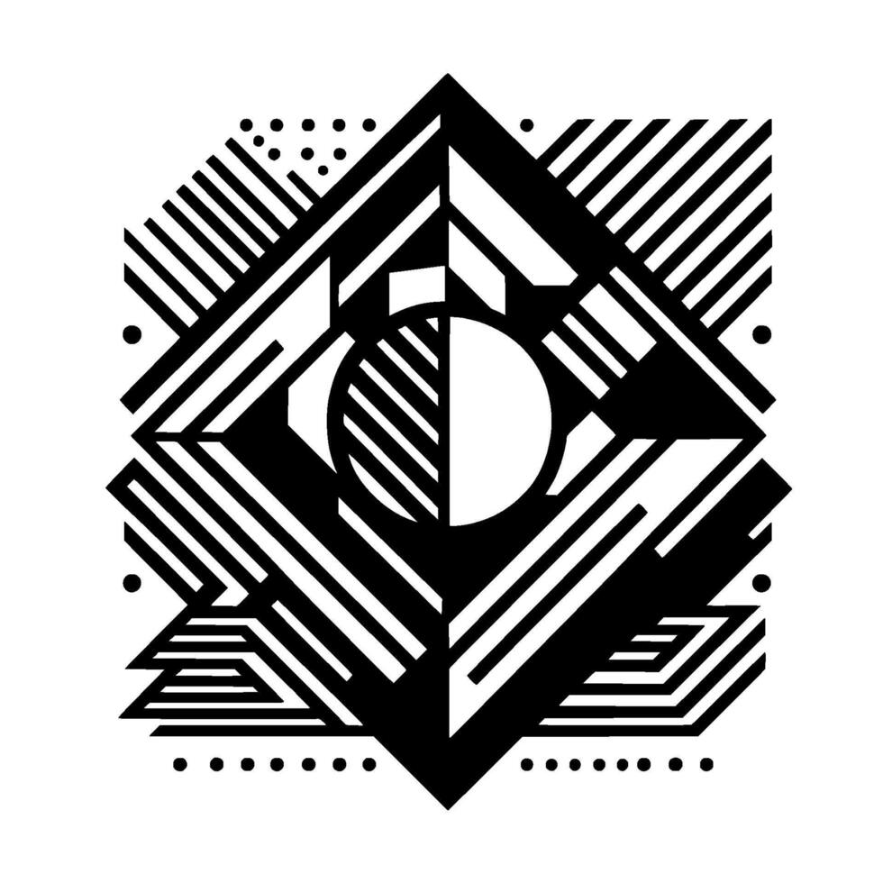 geométrico negro y blanco composición simétrico angular con circular y lineal elementos en un blanco antecedentes. vector