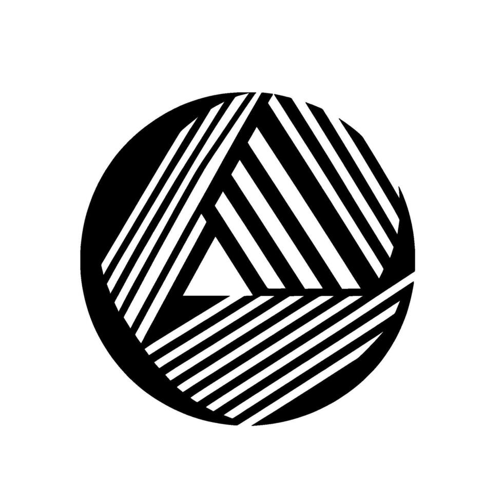 geométrico negro y blanco diseño un circular composición de intersectando triangulos y paralelo líneas, creando un óptico espejismo. vector