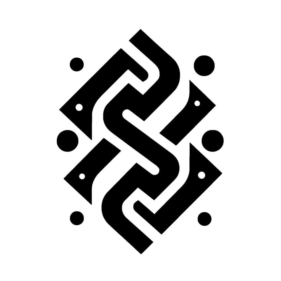 simétrico negro resumen con entrelazados formas, angular bloques, y circular acentos en un blanco antecedentes. Vector Pro