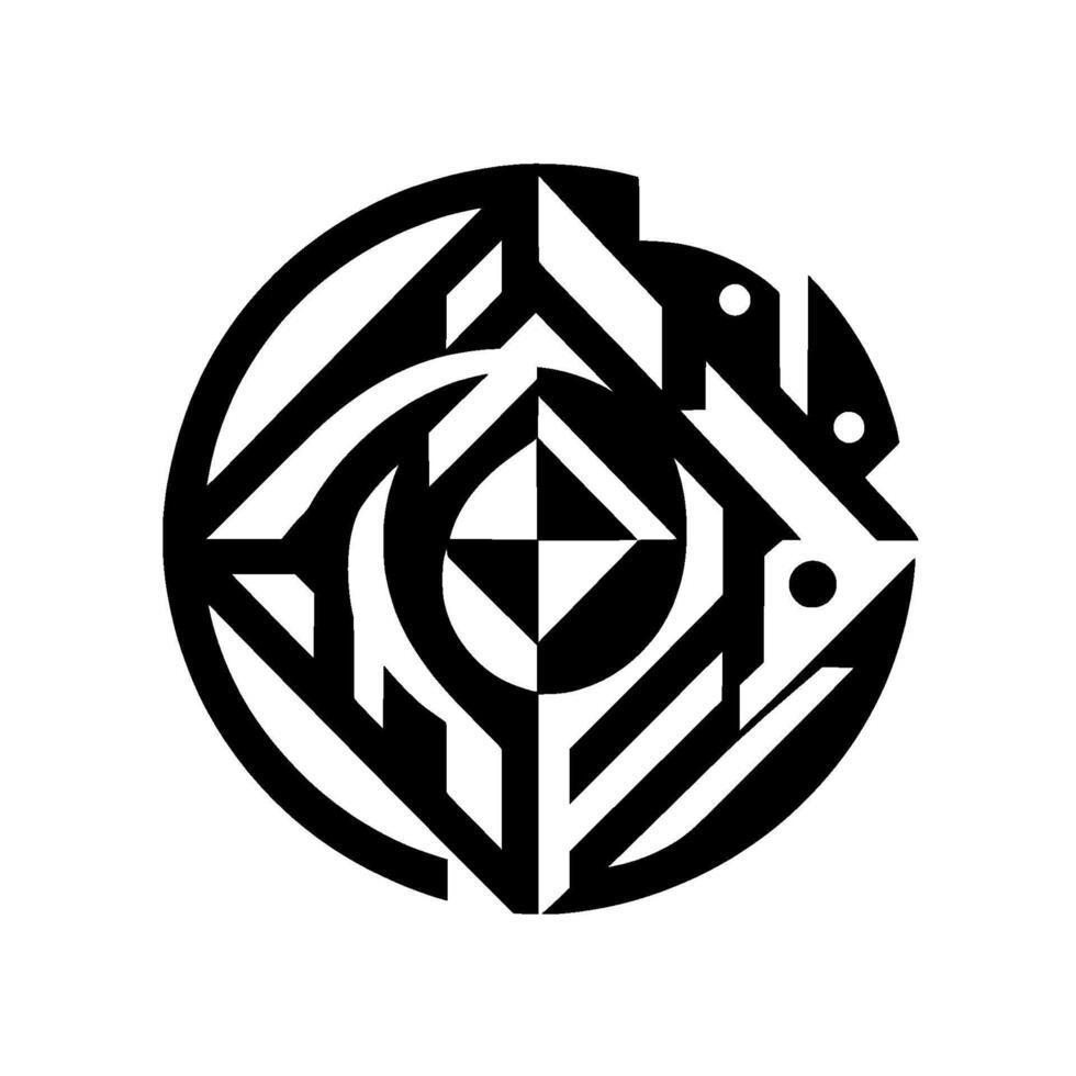 geométrico negro y blanco resumen circular composición presentando angular formas, simétrico patrones, y rígido contraste en un blanco fondo, con un central cuadrado y circular elementos. vector