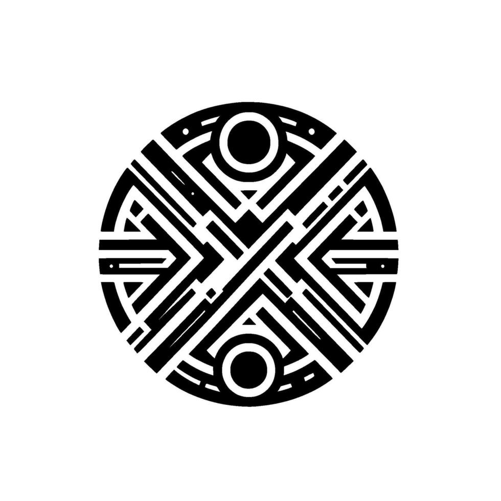 negrita negro y blanco geométrico mandala un simétrico circulo con angular líneas, formas, y círculos creando un moderno minimalista modelo. vector