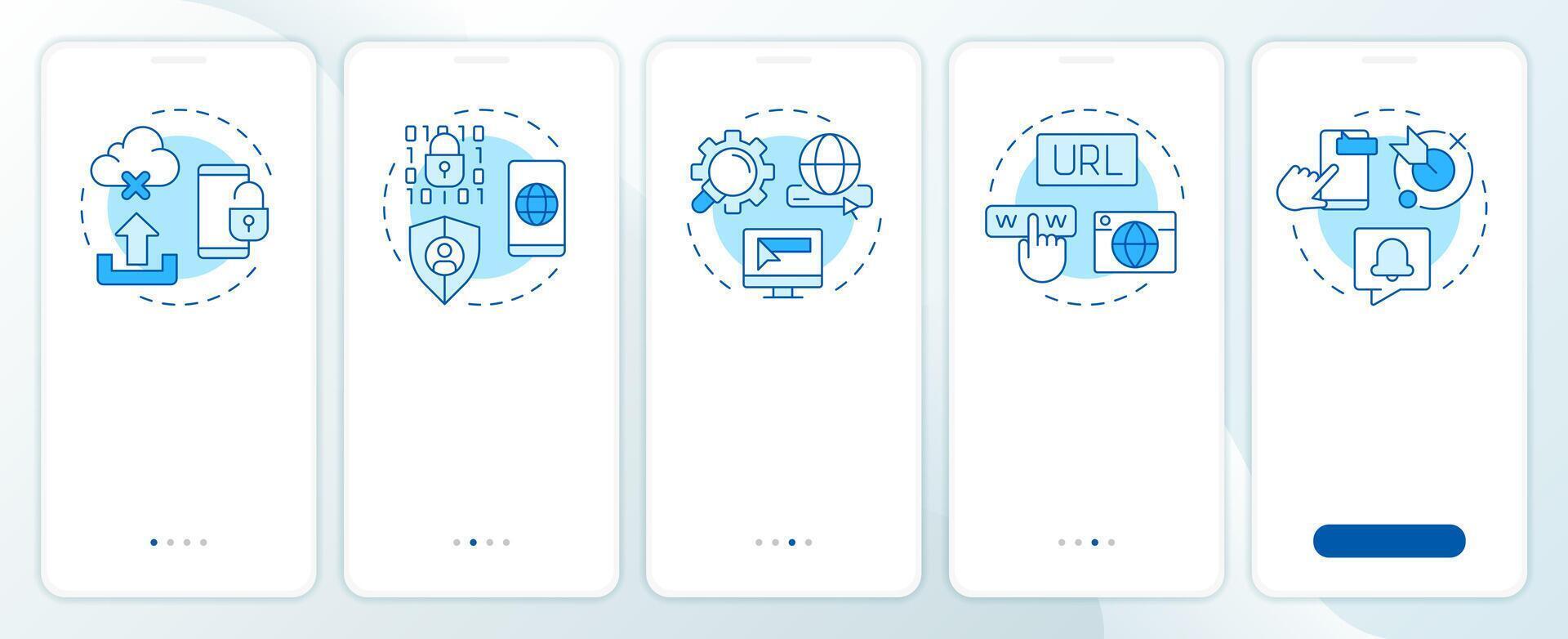 característica de pwas azul inducción móvil aplicación pantalla. recorrido 5 5 pasos editable gráfico instrucciones con lineal conceptos. ui, ux, gui modelo Vector Pro
