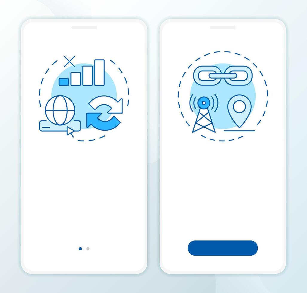 progresivo y nativo web azul inducción móvil aplicación pantalla. recorrido 2 pasos editable gráfico instrucciones con lineal conceptos. ui, ux, gui modelo Vector Pro