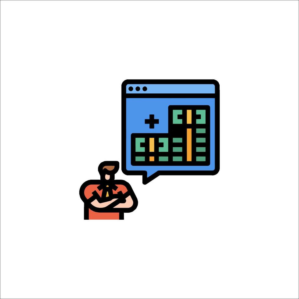 un hombre es en pie en frente de un computadora con un calculadora icono vector