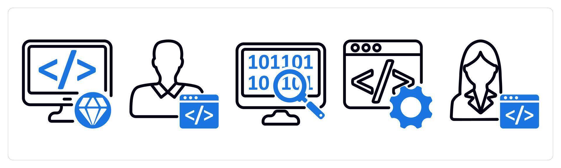conjunto de 5 5 negocio íconos como limpiar código, programador, datos buscar Vector Pro