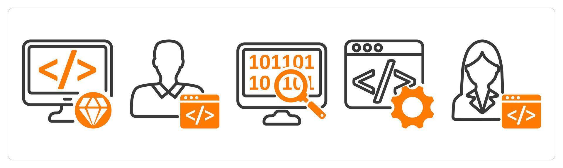 conjunto de cinco negocio íconos como limpiar código, programador, datos buscar Vector Pro