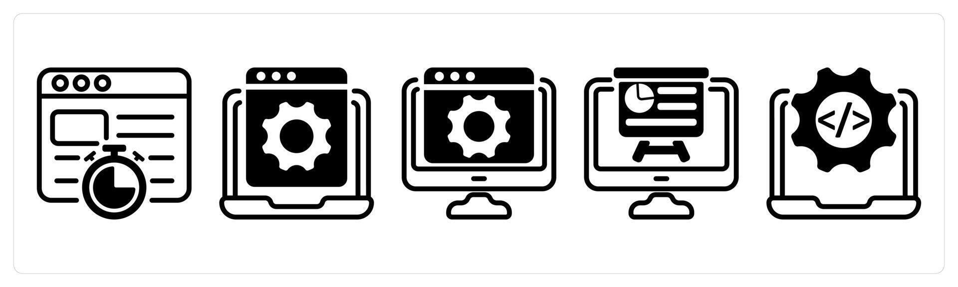 un conjunto de cinco negocio íconos como sitio web velocidad, sitio web desarrollo, página web configuración Vector Pro