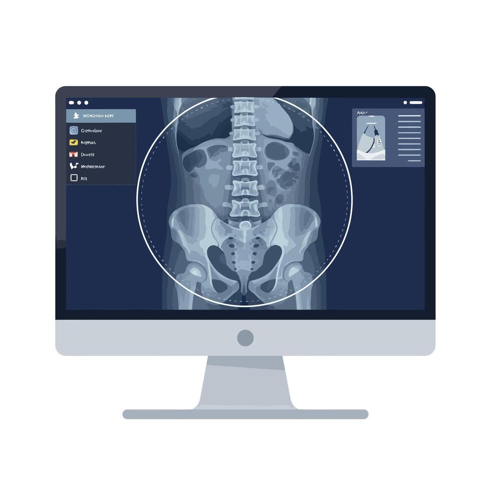 digital ilustración de un radiografía monitor en un computadora monitor en un mínimo estilo Arte Vector Pro