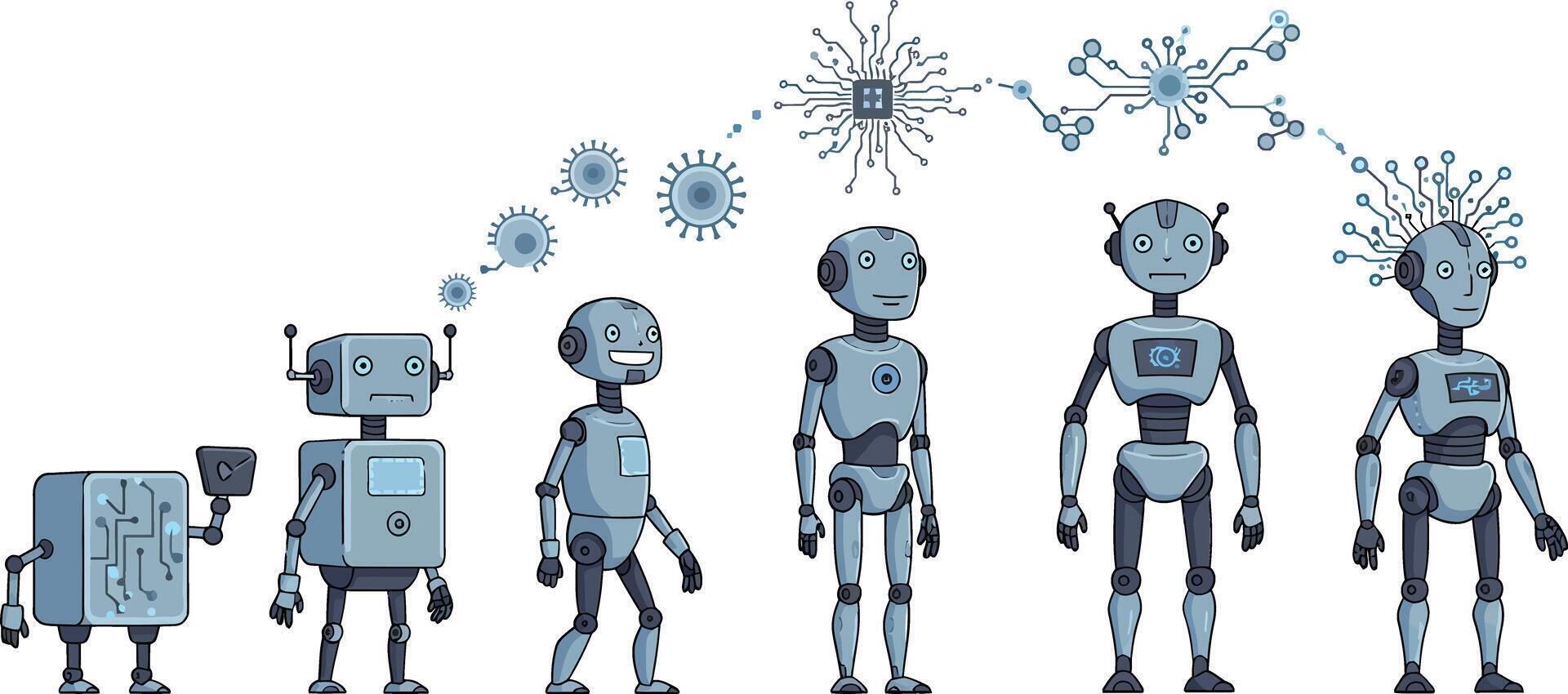 robots evolucionando desde sencillo formas a complejo diseños en plano Arte Vector Pro