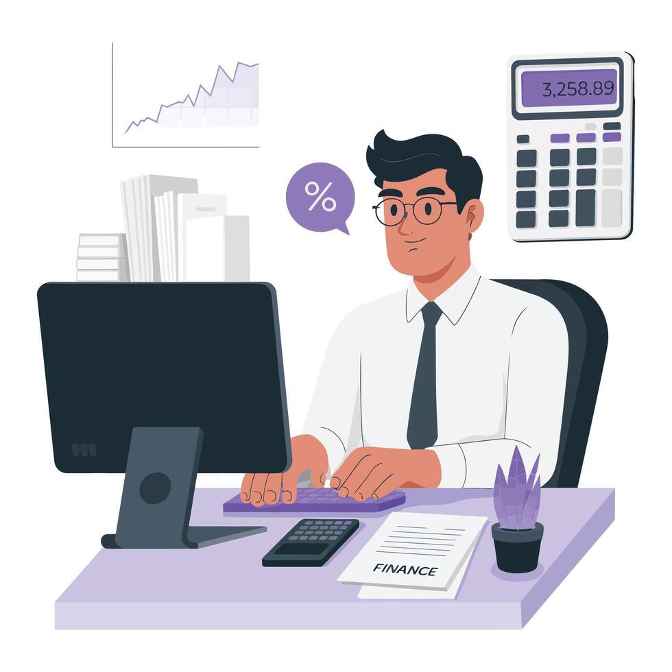 un hombre en un Corbata es trabajando en un computadora Vector Pro