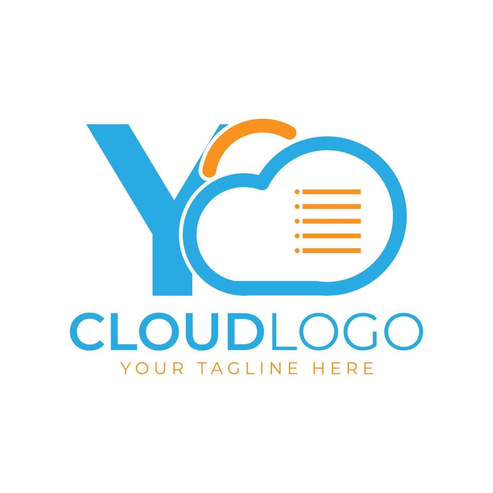 logotipo de tecnología en la nube. letra inicial y con nube y documento por concepto de tecnología. señal meteorológica de software de datos Vector Pro