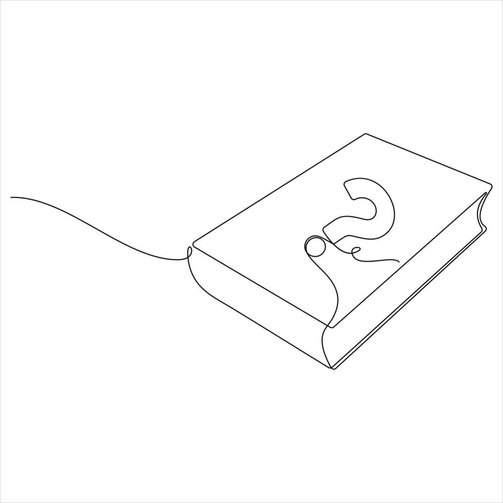 un linea sola dibujo de un libro con un pregunta marca en sus cubrir línea Arte estilo diseño vector