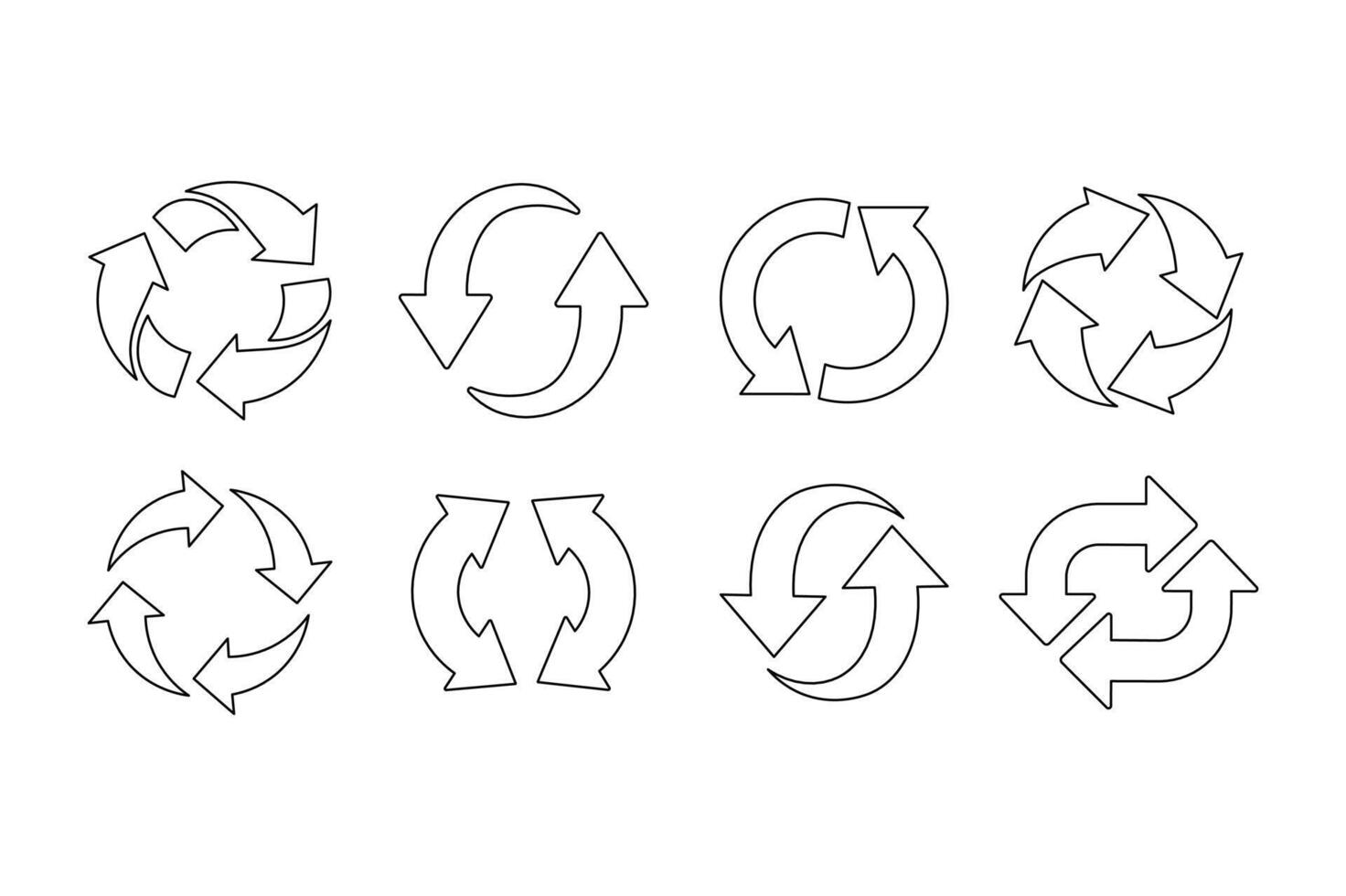 editable giratorio flechas conjuntos, giratorio flechas , circular flecha diseño, flecha rotación símbolo vector