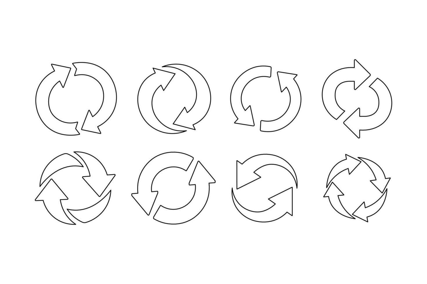 editable reciclar flechas símbolos, giratorio flechas , circular flecha diseño, flecha rotación símbolo vector