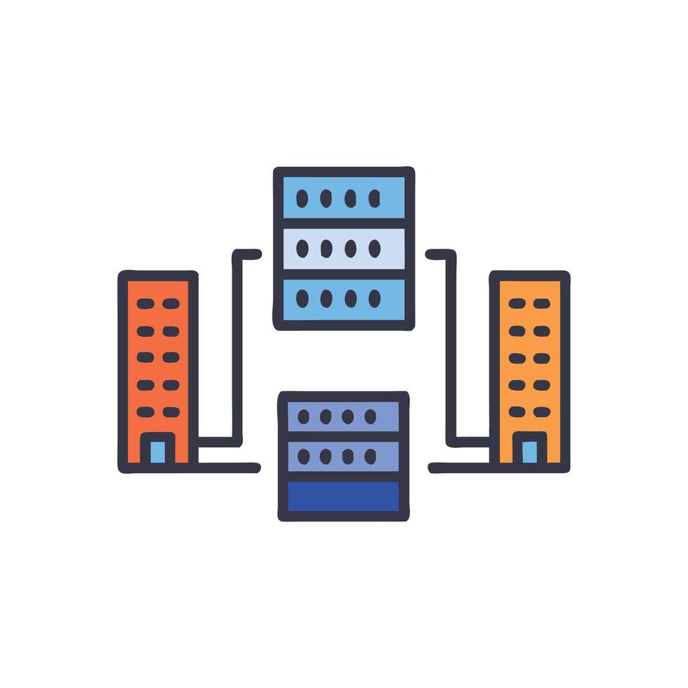 interconectado red infraestructura conectando edificios y datos servidores Vector Pro