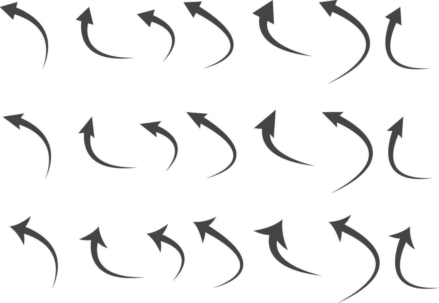 flechas icono colocar. curva rayado flechas diseño. mano dibujado flecha recopilación. curvo flechas intercambiar íconos Vector Pro