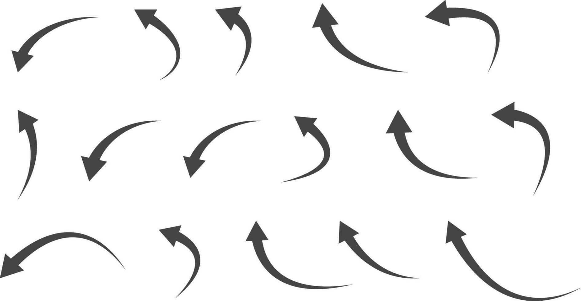 flechas icono conjunto .curva rayado flechas diseño. mano dibujado flecha recopilación. curvo flechas intercambiar íconos Vector Pro