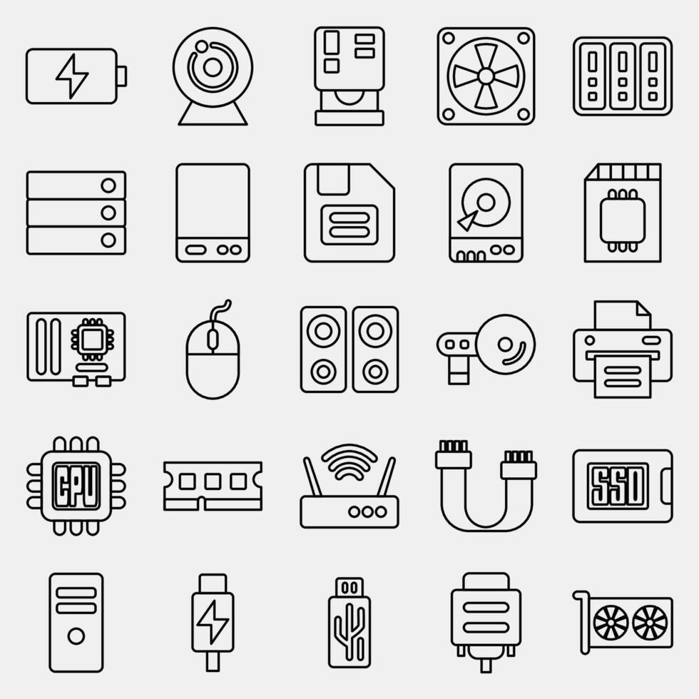 icono conjunto de computadora componentes computadora componentes elementos. icono en línea estilo. Vector Pro