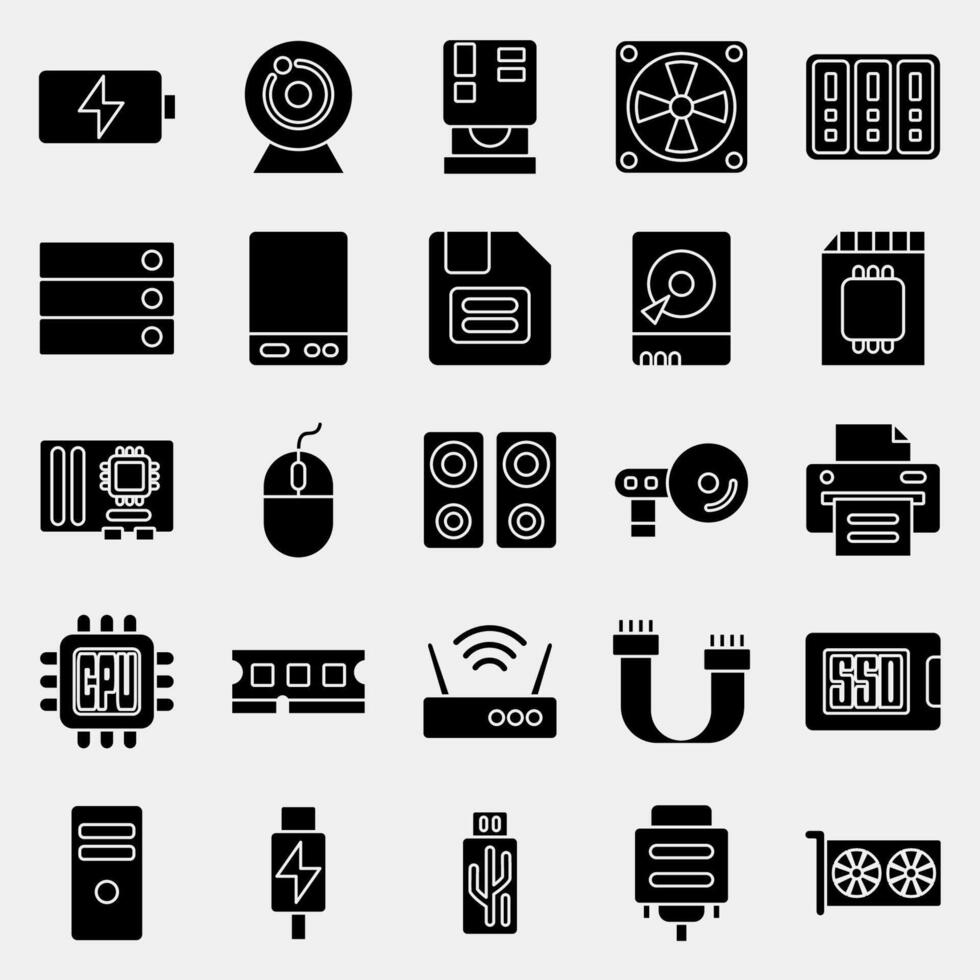 icono conjunto de computadora componentes computadora componentes elementos. icono en glifo estilo. Vector Pro