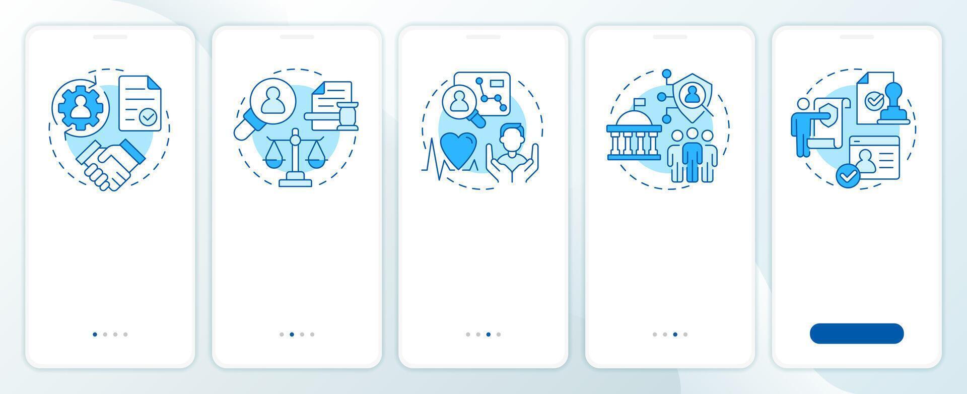 legal bases azul inducción móvil aplicación pantalla. Procesando personal datos. recorrido 5 5 pasos editable gráfico instrucciones con lineal conceptos. ui, ux, gui Vector Pro