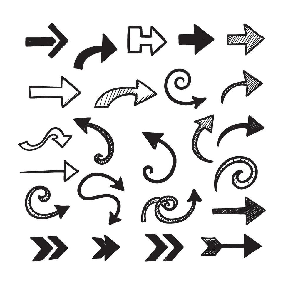 negrita flecha forma elementos y mínimo flecha icono conjunto con mano dibujado flechas Vector Pro
