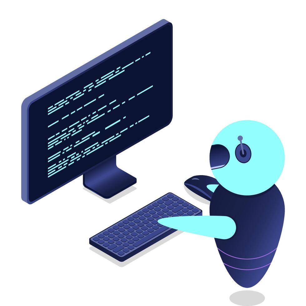 futurista robot Interacción con computadora. isométrica ai robot. digital comunicación chatbots isométrico Vector Pro