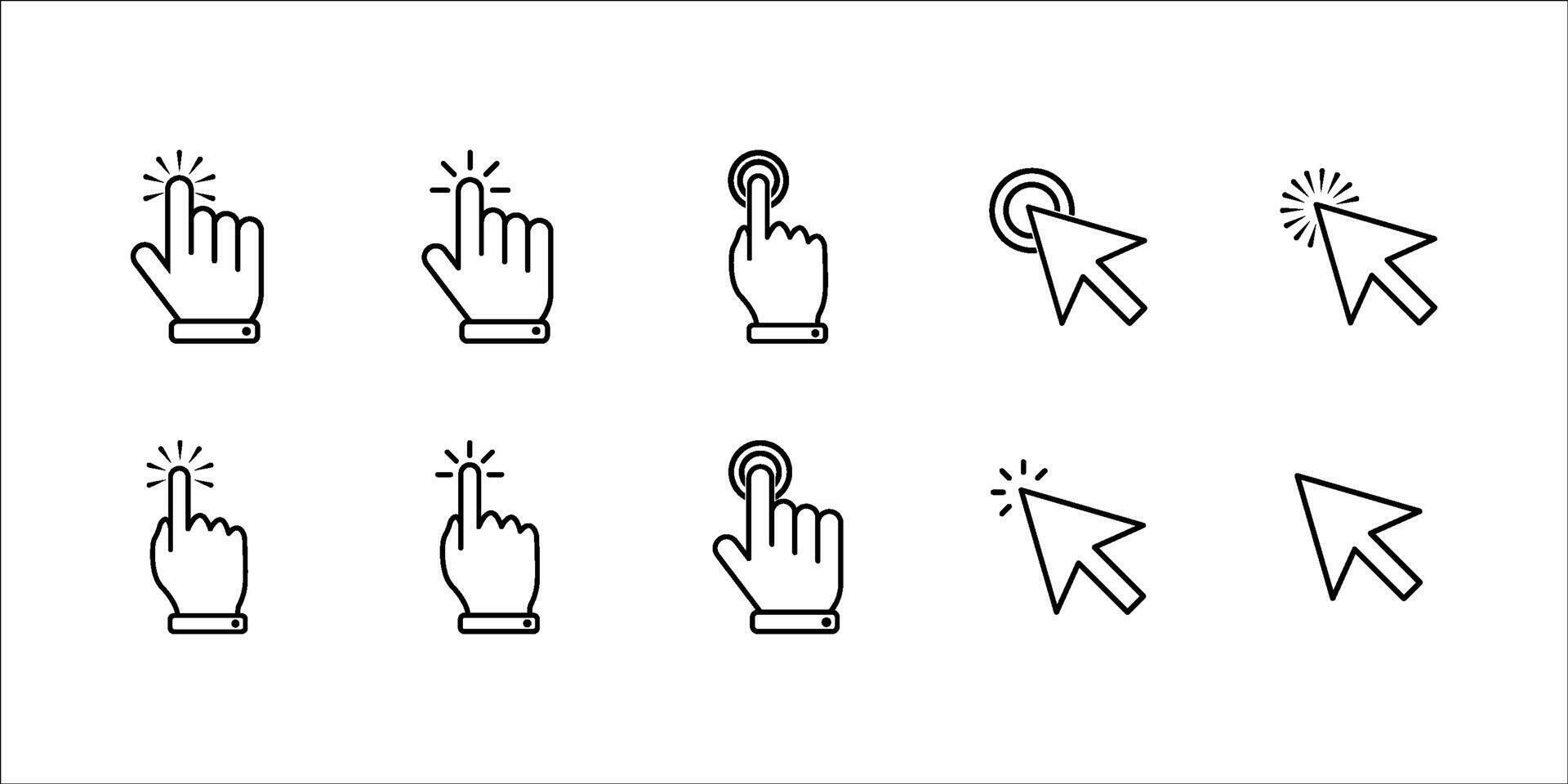 computadora ratón cursor línea icono. cuando haciendo clic el cursor, el señalando mano clics el icono. cuando haciendo clic el cursor. ilustración. Vector Pro