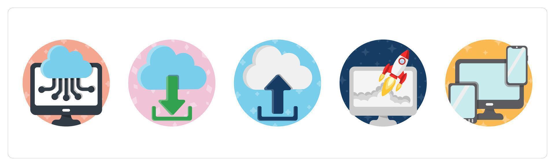 un conjunto de 5 5 mezcla íconos como nube informática, nube descargar respaldo, nube subir apoyo Vector Pro