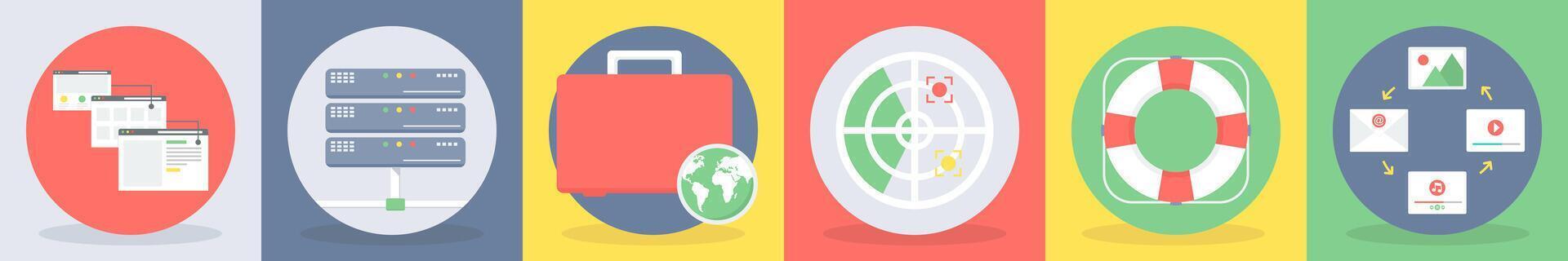 5 5 redondo seo y desarrollo íconos tal como interfaz, servidor, base de datos Vector Pro
